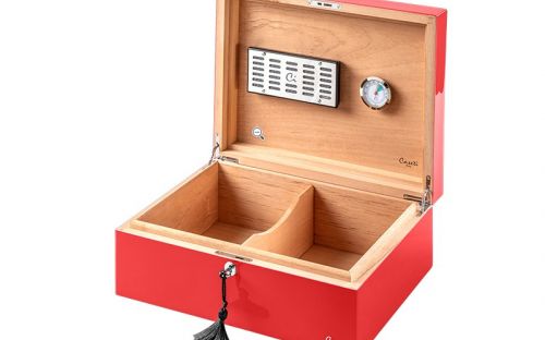 Caseti Paris humidor, spanyol cédrusfa, 80 szivar számára - piros színű, fényes lakkozott