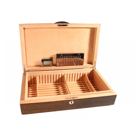 Exkluzív Humidor 60 szál szivar részére, spanyol cédrusfa szivar tároló doboz, párásító, hygrométer - íves