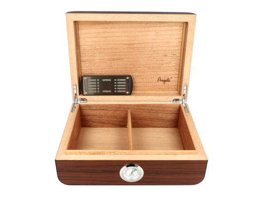 Humidor 50 szál szivar részére, cédrusfa szivar doboz, párásítóval, hygrométerrel - barna, Angelo
