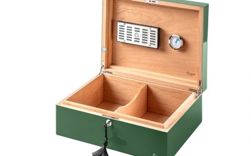 Caseti Paris humidor, spanyol cédrusfa, 80 szivar számára - zöld színű, fényes lakkozott