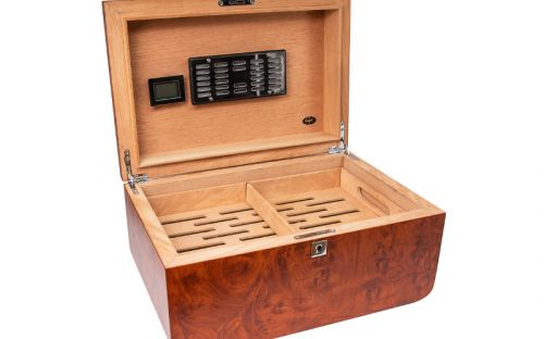A nagy humidorok tökéletesen alkalmasak arra, hogy otthonában emeljék a helyiségek enteriőrjének esztétikumát. Ezek a tágas humidorok közel 100 szál szivar egyidejű elhelyezésére is alkalmasak, akár a hagyományos stílusú fekvő humidorok, akár a több fiókos humidorszekrények elegáns, kényelmes kialakítását kedveli. Ha Ön elkötelezett szivarozó, és barátai osztoznak szenvedélyében, egy nagyméretű humidor elengedhetetlen kiegészítője otthonának.