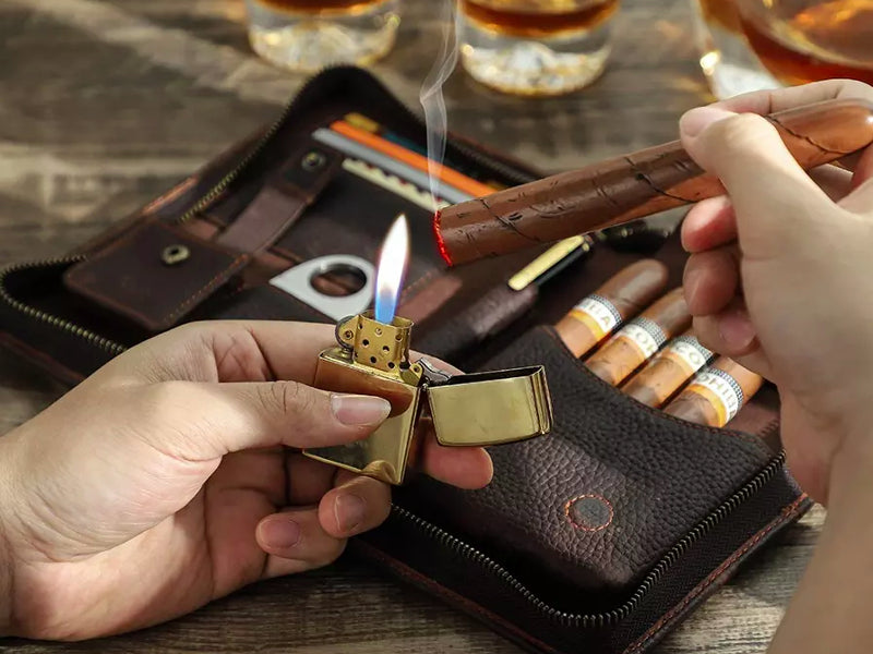Hordozható szivartartó utazótáska - valódi bőr, kávébarna